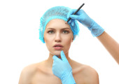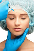 młoda kobieta otrzymujący Chirurgia plastyczna wtrysku na jej twarzy z bliska