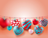 Walentynki tło z biało -czerwone balony 3d serca koncepcja. Sztandar miłości i życzeniami. Ilustracja wektorowa
