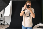 Młoda kobieta z profesjonalnych kamer w studio fotograficzne