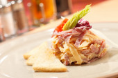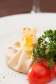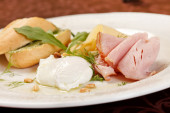 jajko w koszulce z boczkiem i grzankami