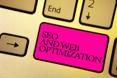 Znak tekstowy Wyświetlono Optymalizacja Seo strony sieci Web. Sprawia, że zdjęcie pojęciowy edukacji online elastyczne i ekonomiczne klawisz klawiatury zamiar utworzyć wiadomość komputer naciskając klawisz klawiatury, pomysł.