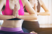 Zdjęcie "Praktykowanie jogi pozycji w pomieszczeniach siłowni studio młoda kobieta. Koncepcja styl życia zdrowy i wellness." może być wykorzystywane do celów osobistych i komercyjnych zgodnie z warunkami zakupionej licencji Royalty-free. Obraz jest dostępny do pobrania w jakości wysokiej rozdzielczości do 5760x3840.