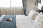 Zdjęcie "Pattaya, Tajlandia - 9 czerwca 2018 r.: Luksusowe wnętrze sypialni w Tung na 9 czerwca 2018 r. w pattaya city, Prowincja Chonburi, Tajlandia" może być wykorzystywane do celów osobistych i komercyjnych zgodnie z warunkami zakupionej licencji Royalty-free. Obraz jest dostępny do pobrania w jakości wysokiej rozdzielczości do 5760x3840.