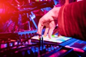 Zdjęcie "Moskwa-16 lutego, 2017: ręka DJ party mix muzyki na scenie z profesjonalnym dźwiękiem mieszania oprogramowania zainstalowanego na laptopie. Sprzęt audio DJ na scenie w ustawieniu oświetlenia koncertowego" może być wykorzystywane do celów osobistych i komercyjnych zgodnie z warunkami zakupionej licencji Royalty-free. Obraz jest dostępny do pobrania w jakości wysokiej rozdzielczości do 5760x3840.