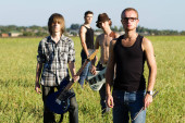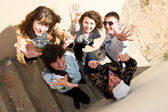 Firma pięciu nastoletnich przyjaciół wiszące na schodach