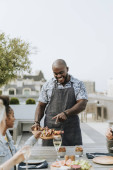Przyjaciele z kieliszków do wina na imprezie na dachu