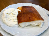 San Sebastian Cheesecake / kremowy zwykły Nowy Jork styl o wizytówką restauracji. Tradycyjny deser.