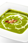 Danie z Zupa szpinakowa krem na białym tle. Zdrowa żywność