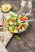 Zdjęcie "Świeżych sałatek z awokado zdrowego odżywiania" może być wykorzystywane do celów osobistych i komercyjnych zgodnie z warunkami zakupionej licencji Royalty-free. Obraz jest dostępny do pobrania w jakości wysokiej rozdzielczości do 5760x3840.