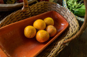 Koszyka cytryn bąbelek tabela widoku z góry z lato