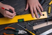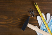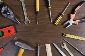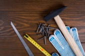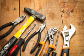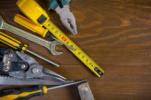 Narzędzia budowlane starym wyjadaczem na powierzchni drewnianych