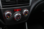 Nowosybirsk, Rosja - 30 stycznia 2019: Toyota Land Cruiser Prado, zbliżenie przyciski boczne drzwi: okna przyciski regulacji, blokady drzwi. Fotografia to nowoczesny samochód na parkingu w Novosibirs