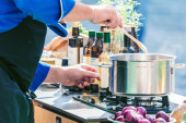 Kucharze w pracy w restauracji z kuchnią co pyszne jedzenie