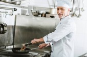kucharz mężczyzna w mundurze dekoracji naczynie z ziół w kuchni restauracji
