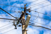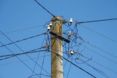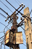 filary zardzewiały pole i przejście kabli