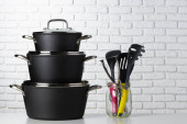 Zdjęcie "Zestaw czyste naczynia kuchenne i naczynia na stół przed kolor tła" może być wykorzystywane do celów osobistych i komercyjnych zgodnie z warunkami zakupionej licencji Royalty-free. Obraz jest dostępny do pobrania w jakości wysokiej rozdzielczości do 5760x3840.