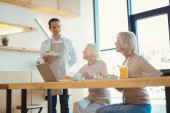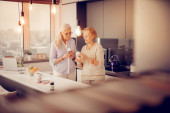 Zdjęcie "Pozytywne, starsze kobiety, stojąc razem w kuchni" może być wykorzystywane do celów osobistych i komercyjnych zgodnie z warunkami zakupionej licencji Royalty-free. Obraz jest dostępny do pobrania w jakości wysokiej rozdzielczości do 5760x3840.