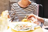 Kobiety w wieku przyjemny cięcie pomidorów, Sałatka