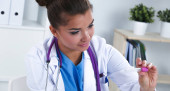 Lekarz i pacjent na biurku w biurze