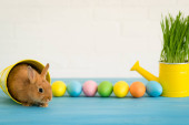 Zdjęcie "Zajączek i koszyk jaj. Koncepcja wakacje wiosna" może być wykorzystywane do celów osobistych i komercyjnych zgodnie z warunkami zakupionej licencji Royalty-free. Obraz jest dostępny do pobrania w jakości wysokiej rozdzielczości do 5760x3840.