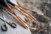 Obcinanie drzew podczas zimowych słoneczny dzień