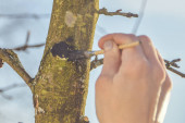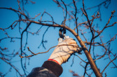 Obcinanie drzew podczas zimowych słoneczny dzień