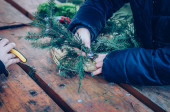 Przycinanie podczas słoneczny zimowy dzień, zbliżenie na ręce i motoryczna sekatora