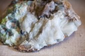 Jasny zielony teksturowany rzadki kamień mineralny na stole