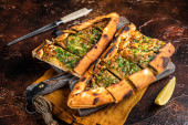 W domu Focaccia na drewnianym stole. Widok z boku, podłoże drewniane