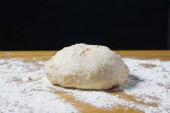 Szef kuchni ręce gotowania ciasta. Widok z góry, podłoże drewniane