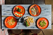 Zdjęcie "Ozdoba pieczone piersi z kurczaka z kalafiorem i pora. Widok z góry, podłoże drewniane" może być wykorzystywane do celów osobistych i komercyjnych zgodnie z warunkami zakupionej licencji Royalty-free. Obraz jest dostępny do pobrania w jakości wysokiej rozdzielczości do 5760x3840.