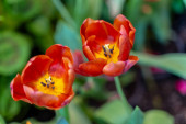 Zdjęcie "Jaskrawoczerwone tulipany na niewyraźne zielone tło" może być wykorzystywane do celów osobistych i komercyjnych zgodnie z warunkami zakupionej licencji Royalty-free. Obraz jest dostępny do pobrania w jakości wysokiej rozdzielczości do 5760x3840.
