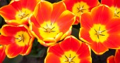 Jaskrawoczerwone tulipany na niewyraźne zielone tło