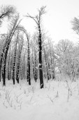 Śnieg krajobraz w parku. Obiektyw typu rybie oko efekty