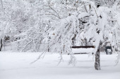 Śnieg krajobraz w parku. Obiektyw typu rybie oko efekty
