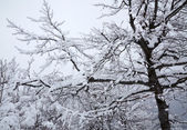 Śnieg krajobraz w parku. Obiektyw typu rybie oko efekty