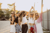 Czterech młodych dziewcząt, biorąc selfie i zabawy