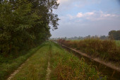 Krajobraz Dolnego Renu w pochmurny letni poranek, Niemcy