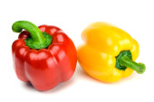 Żółty i czerwony słodki papryka odizolowany na białym tle