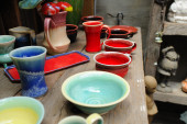 Donice ceramiczne, obiektów i narzędzia z warsztatów z Pottera