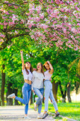 Zdjęcie "pozowanie w pobliżu kwitnące kwiaty wiśni sakura podczas wiosny podróży szczęśliwy przyjaciół. lato wakacje wycieczka na Japonii, Korei, Tajwanu z dziewczyna" może być wykorzystywane do celów osobistych i komercyjnych zgodnie z warunkami zakupionej licencji Royalty-free. Obraz jest dostępny do pobrania w jakości wysokiej rozdzielczości do 5760x3840.