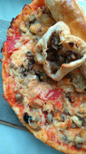 Tradycyjny rosół rosyjski w misce na drewnianym stole z domu wegańskie kalafior Crust Pizza