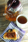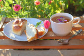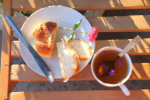 Rosyjski (i kuchni, Ukrainie i Białorusi) tradycyjne danie. Zupa z czerwonego buraka. Barszcz w misce na podłoże drewniane