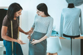 Dwie dziewczyny ogląda ten marynarka w sklepie, zakupy. Miłośników zakupów w sklepie odzieżowym, konsumpcjonizm styl życia, moda
