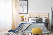Naturalny styl sypialni z dekoracjami w żółty i pomarańczowy kolor