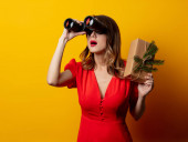 Zdjęcie "Kobieta z białych róż w tulejach z lornetki szukasz czegoś" może być wykorzystywane do celów osobistych i komercyjnych zgodnie z warunkami zakupionej licencji Royalty-free. Obraz jest dostępny do pobrania w jakości wysokiej rozdzielczości do 5760x3840.