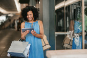 Zdjęcie "Czarny Kobieta osoby z telefonu i torby na zakupy w centrum handlowym. Zakupy w sklepie odzieżowym, konsumpcjonizm styl życia, moda" może być wykorzystywane do celów osobistych i komercyjnych zgodnie z warunkami zakupionej licencji Royalty-free. Obraz jest dostępny do pobrania w jakości wysokiej rozdzielczości do 5760x3840.