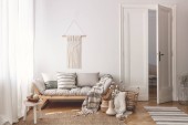 Jasnej jadalni zaprojektowana z naturalnych materiałów