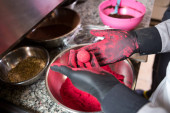 Zdjęcie "Tematu gotowanie to zawód gotowania. Zbliżenie dłoni kaukaski mężczyzna w kuchni przygotowując czerwona ryba filety łososia mięsa w czarny lateks rękawice jednolite." może być wykorzystywane do celów osobistych i komercyjnych zgodnie z warunkami zakupionej licencji Royalty-free. Obraz jest dostępny do pobrania w jakości wysokiej rozdzielczości do 5760x3840.
