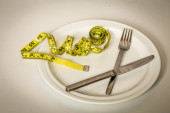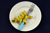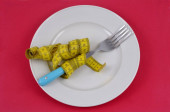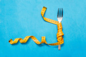 Zdjęcie "Gruba Bun z talii, zaostrzone przez miara zwijana na białe płytki z łyżką, widelec. Dieta, zważyć strat, zdrowe odżywianie, koncepcja fitness." może być wykorzystywane do celów osobistych i komercyjnych zgodnie z warunkami zakupionej licencji Royalty-free. Obraz jest dostępny do pobrania w jakości wysokiej rozdzielczości do 5760x3840.